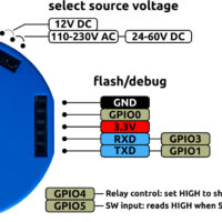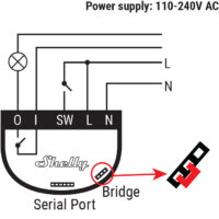 Shelly 1 har även ett potential-fritt relä vilket innebär att du har en krets som är helt fri från den andra drivande kretsen. Till exempel så kopplar du in den på 230V och använder den andra kretsen för att sluta en krets till garagedörren som på så vis stänger eller öppnar den.